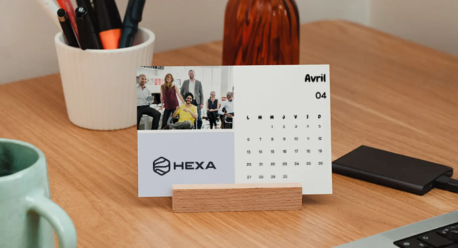Un calendrier personnalisé pour vos collaborateurs renforce le sentiment d’appartenance et valorise votre culture d’entreprise, au bureau comme à la maison.